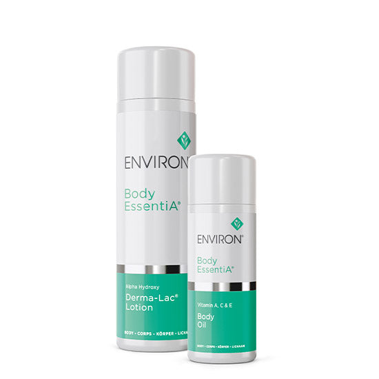 To help address the overall appearance of the skin, Environ's Alpha Hydroxy Derma-Lac Lotion and the Vitamin A, C & E Body Oil combine their efforts, revealing the appearance of a healthier, more radiant, smooth and energized skin on the body. The Vitamin A, C & E Body Oil is a light, nourishing oil containing vitamins A, C and E to assist in nourishing and relieving the appearance of dry and sun damaged skin.